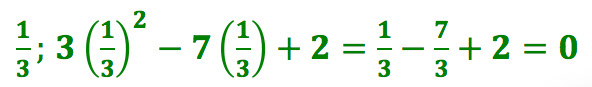 Sustituyendo x por 2 en la ecuación dada 3x2 - 7x + 2 = 0, se tiene: