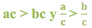 Así, dada la desigualdad a > b y siendo c una cantidad positiva, podemos escribir: